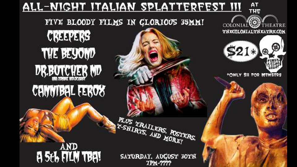 What’s better than showing one awesome Italian horror film at the Colonial Theatre? Making it an all-night affair to test the limits of your horror fan existence! We’re pulling out all the stops to bring you a lineup filled with incredibly strange, ridiculously bloody, rarely screened Italian horror cinema. Join us and see if you can survive the madness!
