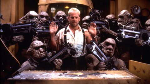In the colorful future, a cab driver unwittingly becomes the central figure in the search for a legendary cosmic weapon to keep Evil and Mr. Zorg at bay. Starring Bruce Willis, Milla Jovovich, and Gary Oldman.