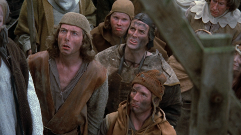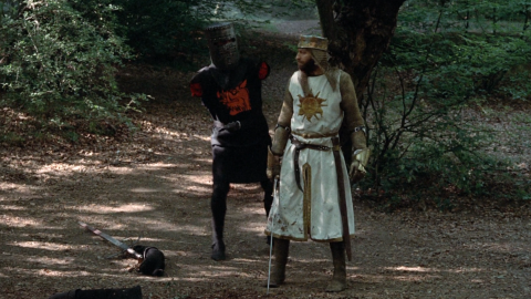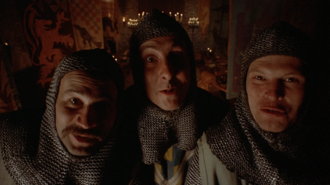A comedic send-up of the grim circumstances of the Middle Ages as told through the story of King Arthur and framed by a modern-day murder investigation. When the mythical king of the Britons leads his knights on a quest for the Holy Grail, they face a wide array of horrors, including a persistent Black Knight, a three-headed giant, a cadre of shrubbery-challenged knights, the perilous Castle Anthrax, a killer rabbit, a house of virgins, and a handful of rude Frenchmen.