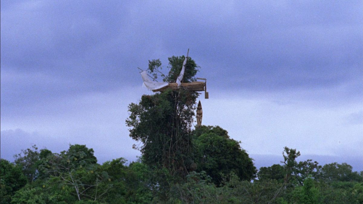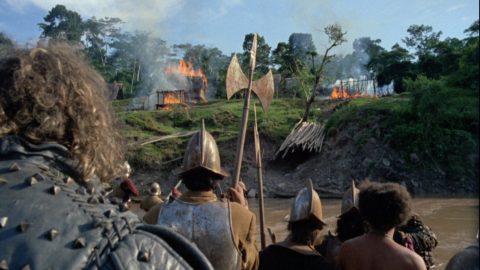 Herzog’s peerless, epochal exercise in phenomenological mysticism opens with an image that embodies not just the film and its philosophy but a defining project of his career: ant-like conquistadors descend the steep slope of a viridescent mountain smothered in mist, lugging livestock and weapons of war, some plummeting to their doom while the enclosing, indifferent jungle looks on. It’s a tale as old as time: hubristic, questing men, committed to the delusional pursuit of a geographical chimera, swallowed by the impassive force of nature. But Herzog boldly frames historical fiction as fact, with a documentary immediacy that dispels the illusion of narrative, as if the film were a transmission beamed from across the galaxy—an alien record of a moment when the objective reality captured by the camera mirrored the madness consuming the colonizers.