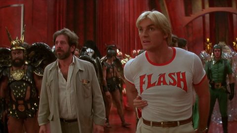 Although NASA scientists are claiming the unexpected eclipse and strange hot hail are nothing to worry about, Dr. Hans Zarkov (Topol) knows better, and takes football star Flash Gordon (Sam Jones) and travel agent Dale Arden (Melody Anderson) with him into space to rectify things. They land on planet Mongo, where the despot Ming the Merciless (Max von Sydow) is attacking Earth out of pure boredom. With the help of a race of Hawkmen, Flash and the gang struggle to save their home planet.