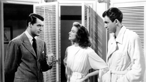 This classic romantic comedy focuses on Tracy Lord (Katharine Hepburn), a Philadelphia socialite who has split from her husband, C.K. Dexter Haven (Cary Grant), due both to his drinking and to her overly demanding nature. As Tracy prepares to wed the wealthy George Kittredge (John Howard), she crosses paths with both Dexter and prying reporter Macaulay Connor (James Stewart). Unclear about her feelings for all three men, Tracy must decide whom she truly loves.