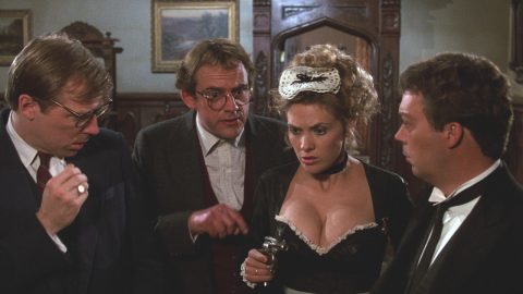 Based on the popular board game, this comedy begins at a dinner party hosted by Mr. Boddy, where he admits to blackmailing his visitors. These guests, who have been given aliases, are Mrs. Peacock, Miss Scarlet, Mr. Green, Professor Plum, Mrs. White and Col. Mustard. When Boddy turns up murdered, all are suspects, and together they try to figure out who is the killer. Starring Madeline Kahn, Tim Curry, Lesley Ann Warren, Michael McKean, Christopher Lloyd, Martin Mull, Eileen Brennan, and Colleen Camp.