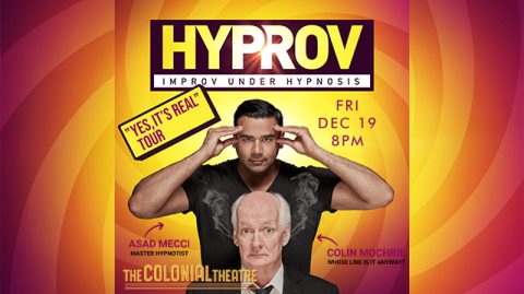 Colin Mochrie & Asad Mecci star in HYPROV: Improv under Hypnosis. HYPROV (pronounced hip-rawv), the hit show that has sold out venues across Canada, America and the United Kingdom, is returning with the “Yes, It’s Real” Tour, visiting 45 North American cities beginning October 10 at the Hawaii Theatre Center in Honolulu.